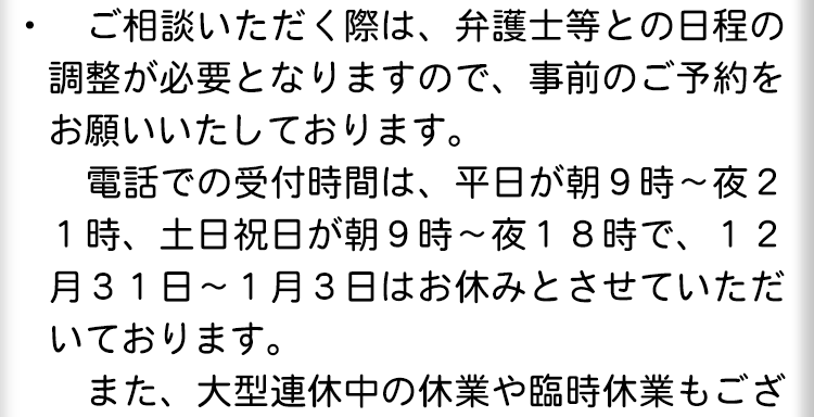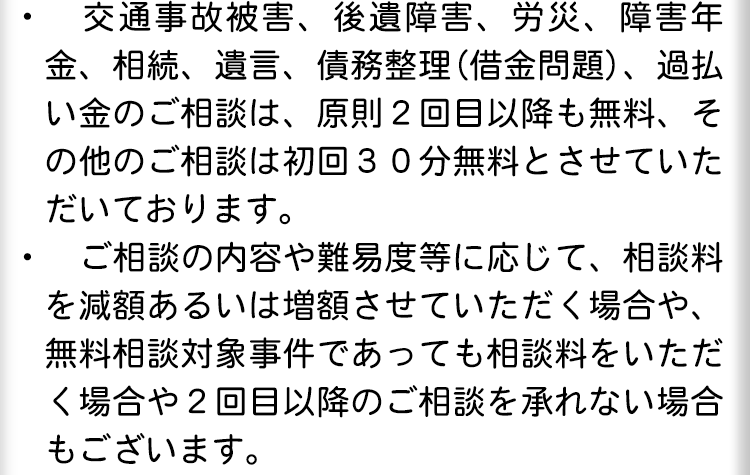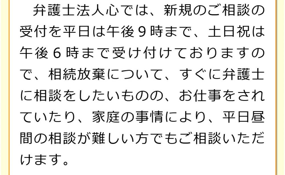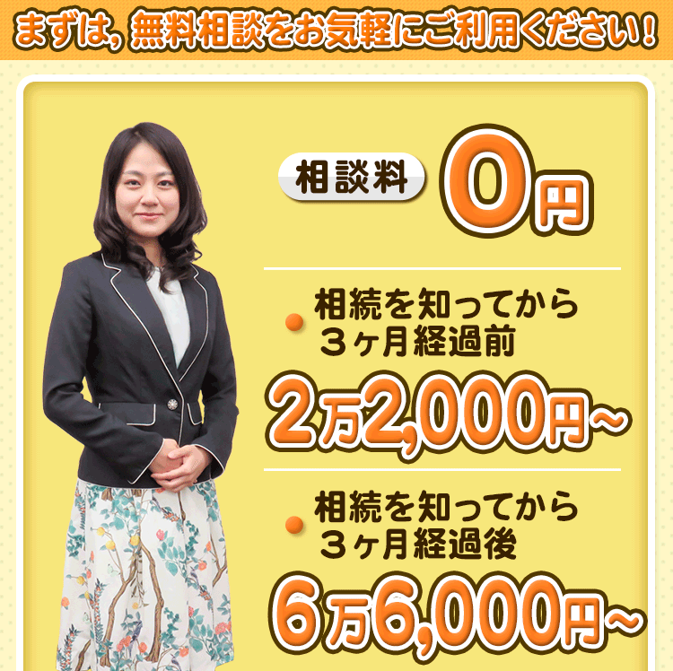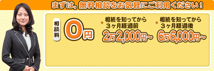 当法人では、相続放棄について原則無料でご相談を承りますので、費用の負担なくご相談いただくことができます。